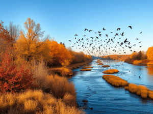 I noticed how calm the river was. I noticed the colour of the water and how brown it was due to the storm in the night. I noticed the nature of the morning light and how many leaves had now fallen to the ground. In particular I noticed flocks of birds as they woke from their morning roosts.